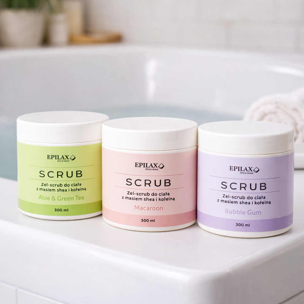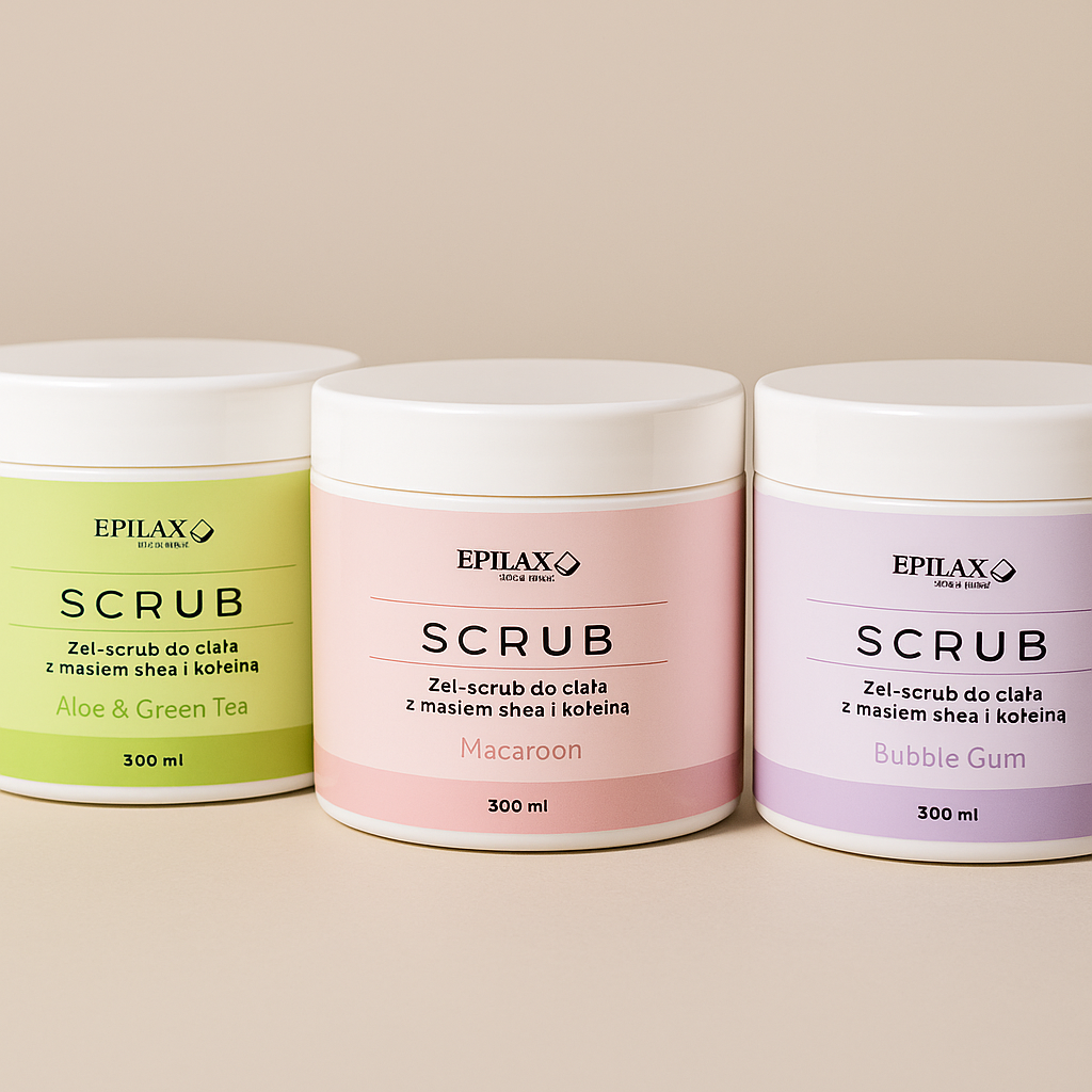 Scrub do ciała Epilax Macaroon 300 ml – profesjonalny wygładzający peeling z masłem shea i kofeiną
